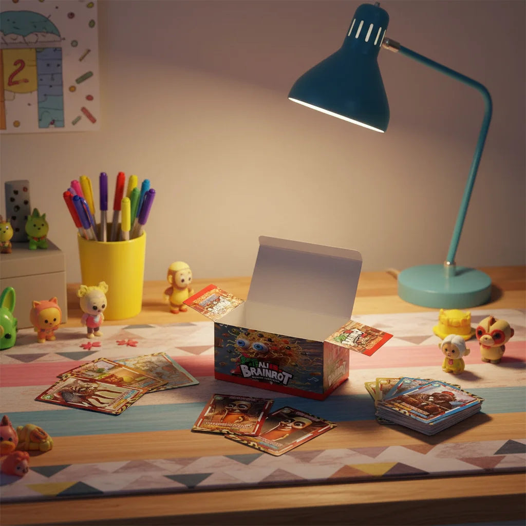 Chaque booster Brainrot contient plusieurs cartes surprises à collectionner. Découvre de nouvelles cartes uniques, échange-les avec tes amis et crée ton propre jeu pour des parties amusantes et toujours différentes !